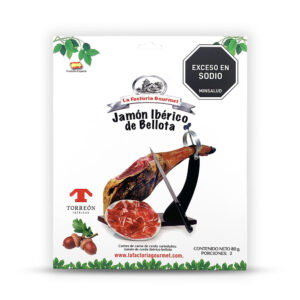 Elaborado a partir de cerdos ibéricos puros criados en libertad y alimentados 50% con bellota, peso variable de 7 a 8 Kg. Sabor intenso, textura jugosa y aroma inconfundible.