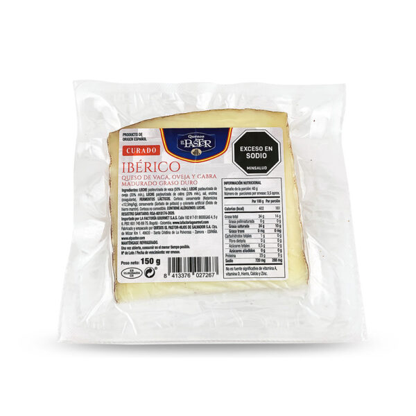 Queso Ibérico Curado: Una mezcla exquisita de leche de vaca, oveja y cabra, madurado durante el tiempo adecuado para ofrecer un sabor intenso y una textura perfecta. Presentado en un bloque de 150g, es el deleite perfecto para los amantes del queso.