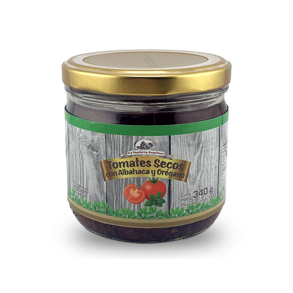 Tomates secos con albahaca y orégano: Una mezcla aromática perfecta para ensaladas y platos gourmet. Envase de 340g para un toque mediterráneo delicioso.